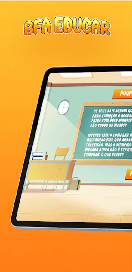 The game takes place in the city of Kuzola, with a platform game format. The player will be able to choose between six professions and the objective of the game is to collect coins, while the player learns concepts about financial literacy. In each profession, the player will have three levels of difficulty and, in each of them, a challenge to complete, as he touches the screen and collects more and more coins. During the game, at each level, you'll have the opportunity to answer three questions on topics related to savings, family budget, profit and expenses, among others, while these topics are explained to you in the form of a related story. with the profession in question.