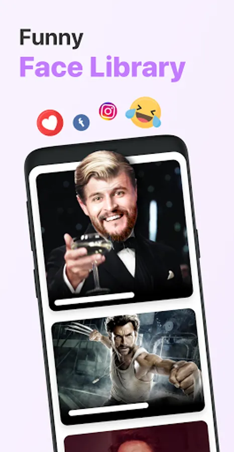 To make a face swap with any GIF, browse our wide library and find the perfect one with any animation. Then take a selfie or choose a photo from your camera roll. Your face from the photo will be added into the GIF automatically. The only thing you will need to do is to take a clear photo in good light so that the app can recognize your face.