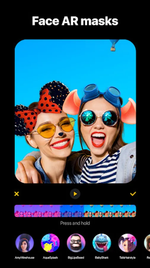 Bring AI-powered video editor into your app and let your users create short videos. Our video effects API includes the best collection of filters, animated backgrounds and AR overlay features.