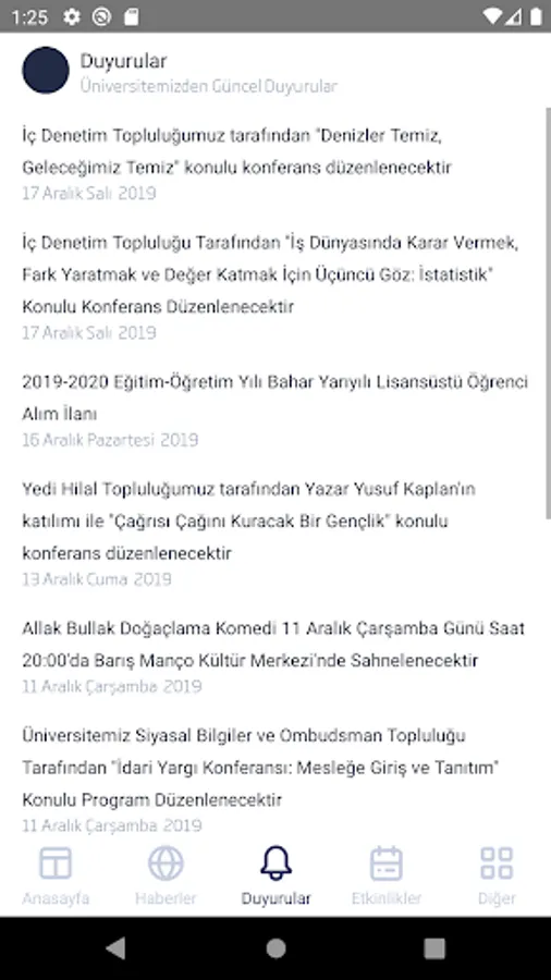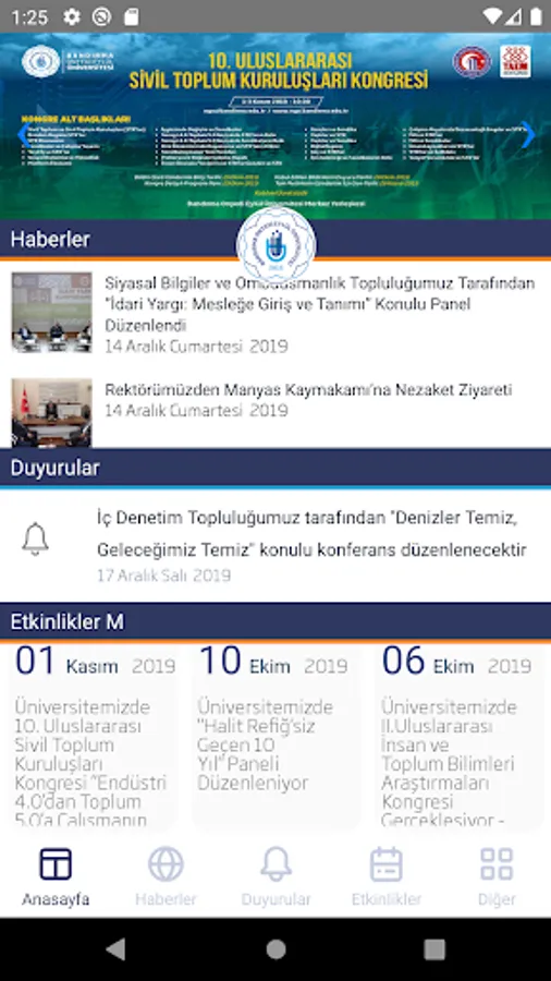 With the official mobile application of Bandırma Onyedi Eylül University, you can get information about news, announcements, active links and more.