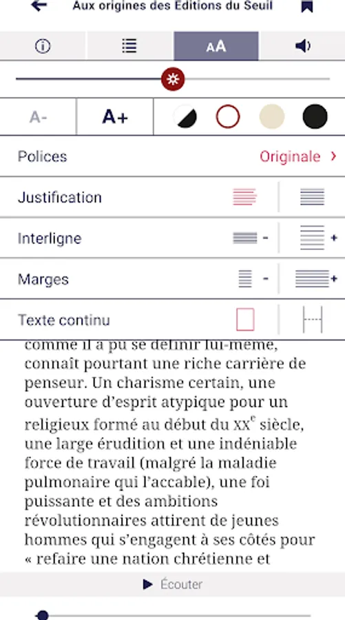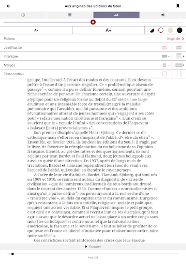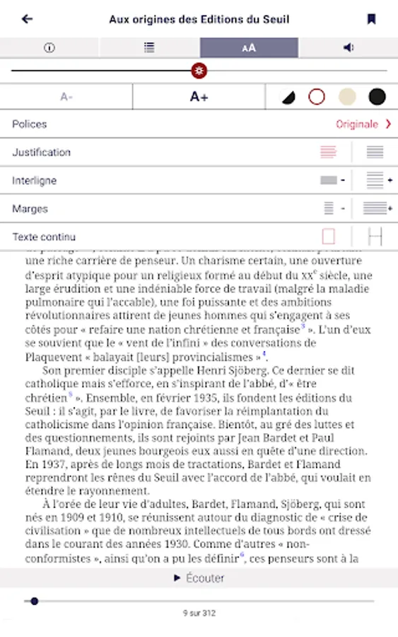 Baobab allows personalization of the reading experience: the user can choose the size, the fonts and the reading and creation mode. He can create his reading bookmarks.