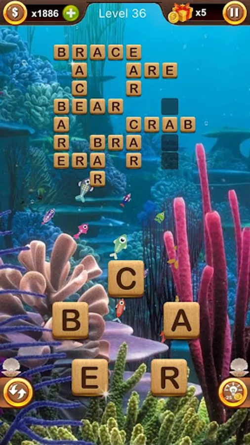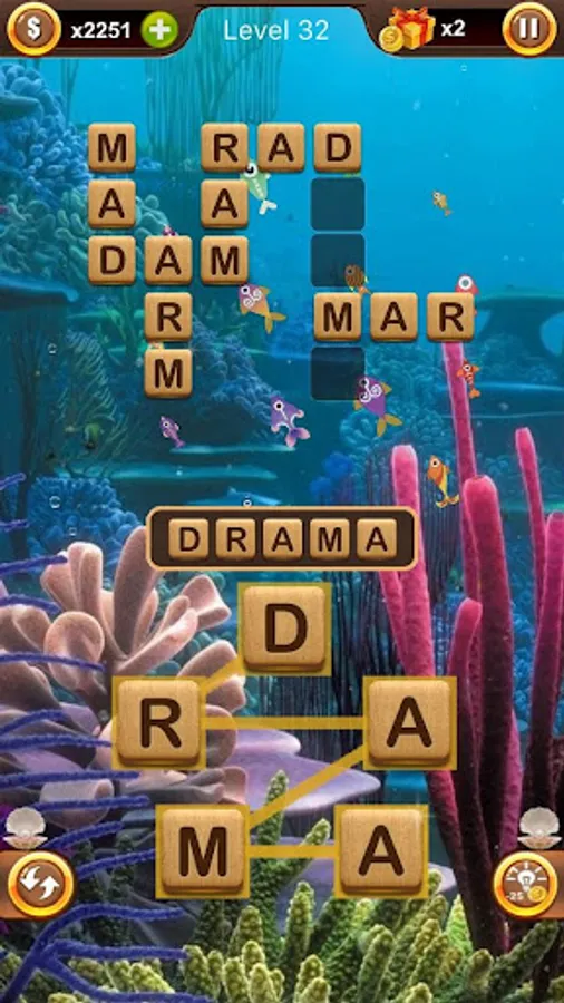 - Find as many words as possible to unlock levels and earn extra bonus coins.