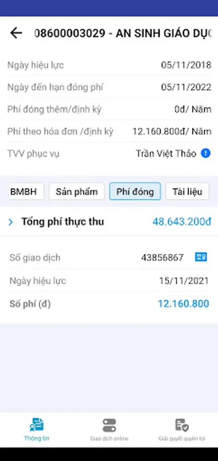 - Look up information of insurance policies, including insurance benefits, payment process, contract value, Insurance Benefit Resolution;