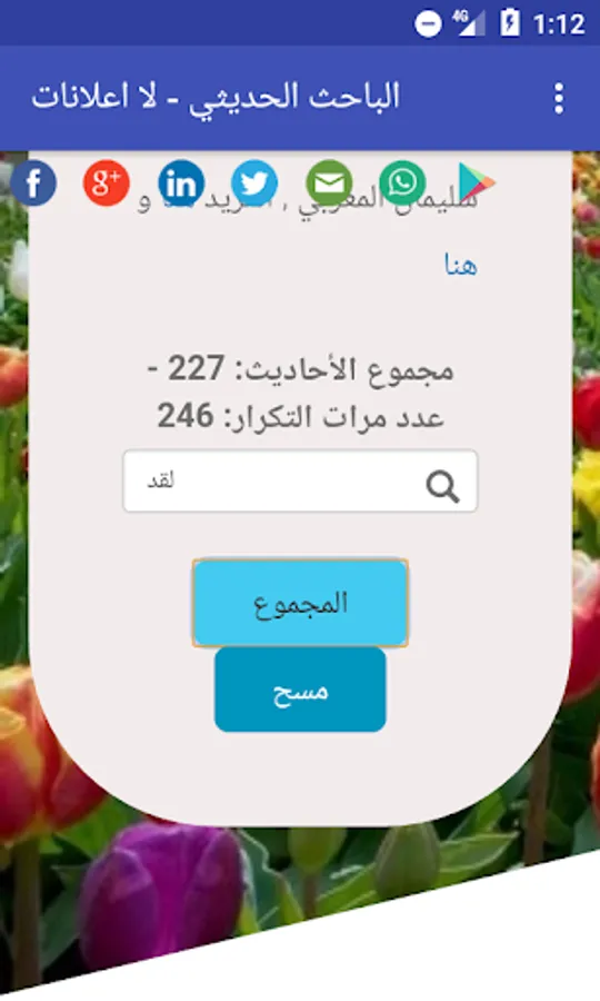 برنامج للبحث عن كلمة او جملة فى الأحاديث النبوية الشريفة و معرفة عدد الأحاديث التى تحتوي على هذة الكلمة او الجملة