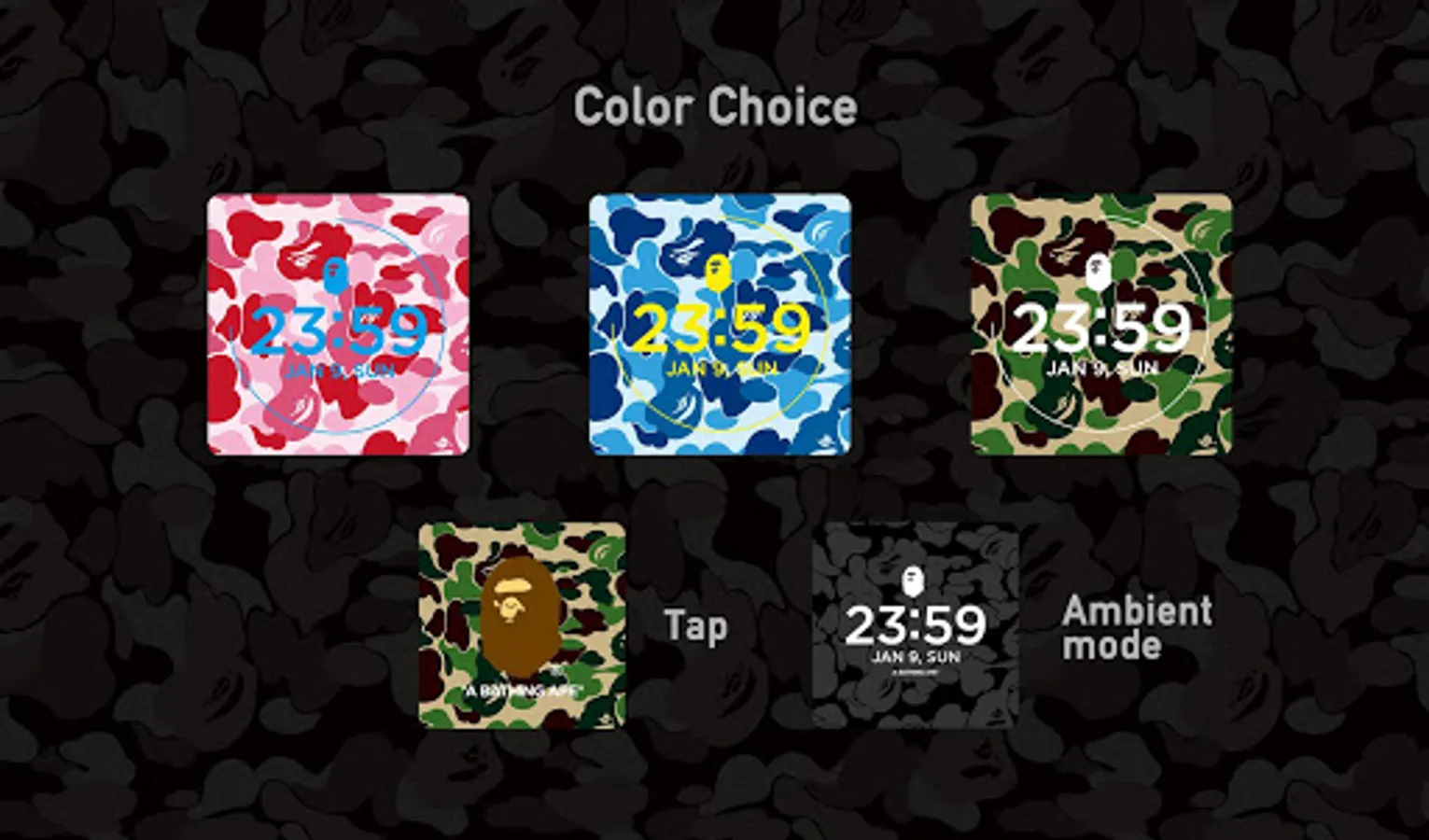 A BATHING APE® will debut a BAPE® CAMO edition WatchFace for Android Wear.