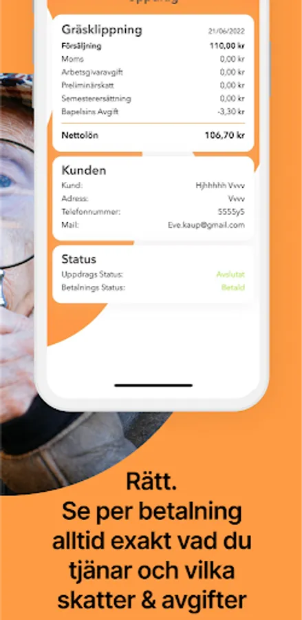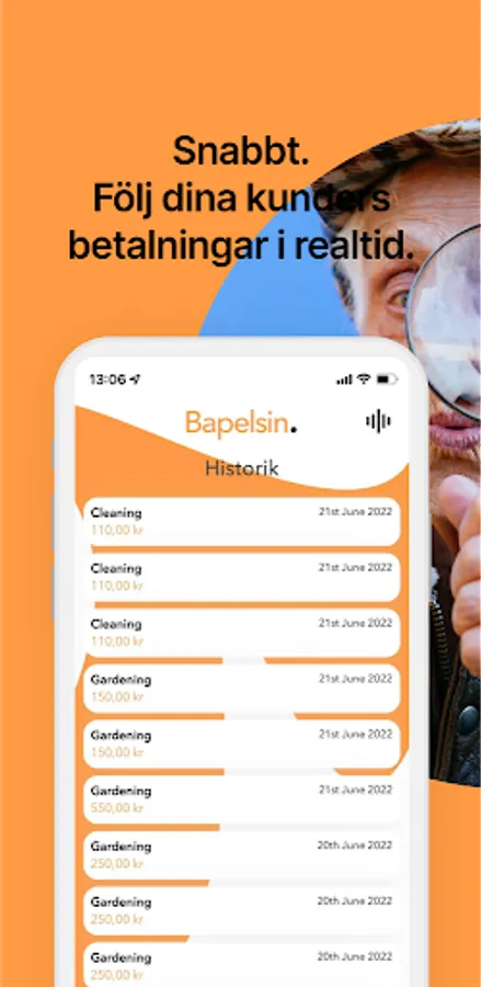 Med Bapelsin kan du snabbt och enkelt ta betalt för dina tjänster utan att starta eget företag, ha en kassa, betalsystem och ta hand om redovisning. Du tar smidigt betalt av dina kunder via Swish i vår app och när dina kunder har betalat hanterar vi alla skatter etc medans du får en skattad lön den 25te varje månad baserad på din försäljning.