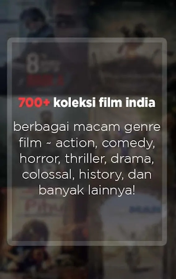 This free movie watching application is equipped with Indonesian subtitles and more than 700 Indian films we have provided for you!