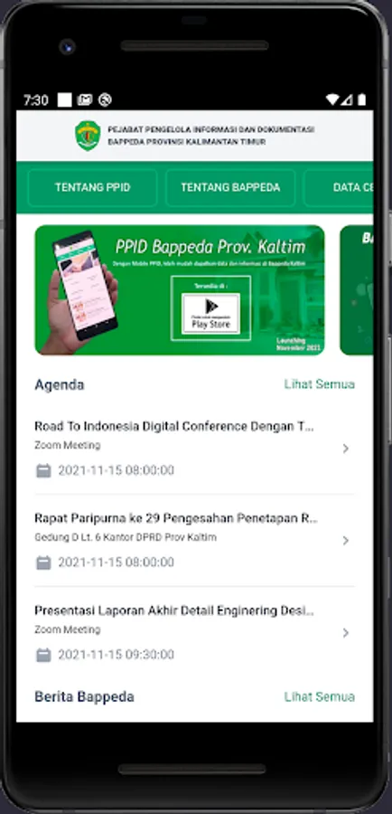 Information about activities, agenda, and profile of Bappeda East Kalimantan