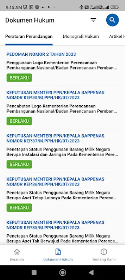 2. Providing reliable and reliable legal information for all parties, both internal to the Ministry of National Development Planning/Bappenas and stakeholders outside the Ministry of National Development Planning/Bappenas;