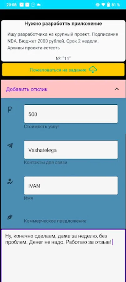 Just leave a request for the development of an application or website and expect responses from interested IT specialists.