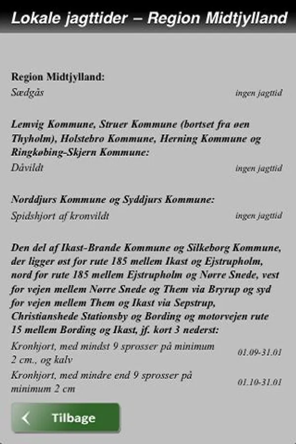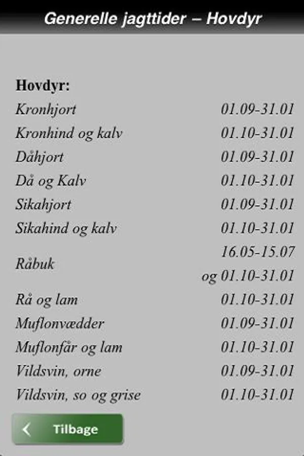 This app contains the Danish hunting seasons which are valid from. 1.4.2011 updating by. 1 4.2013. Below the general jagtider and local hunting seasons. In addition, a tracker app directory, and a function that displays soltider for a number of Danish cities. Note that this app is all information is always available, whether you are connected to the phone or not.