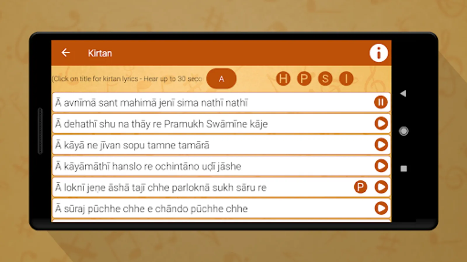 The kirtan section allows the app to be used as a Kirtanavali. Simply click on the title/words of the kirtan and see what happens. Listen to 30 seconds clips to refresh the tune or to learn it if it is new to you.