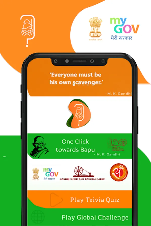 Bapu Quiz is a Multiplayer Quiz Application game with trivia and global Challenge Launched by Hon'ble President of India, Shri Ramnath Kovind in the August Presence of Hon'ble minister of Culture and Tourism, Shri Prahlad Singh Patel, Government of India on the occasion of 150th Birth year Celebration of Mahatma Gandhi.