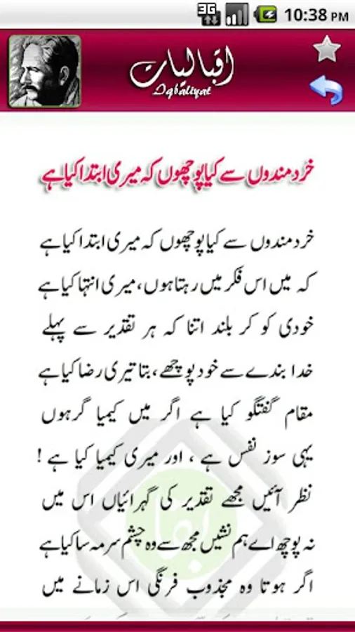Its a collection of poetry from Baal-e-Jibreel, by the national poet of Pakistan Dr. Sir Allama Muhammad Iqbal. This project is to foster an awareness of the work of Allama Iqbal.