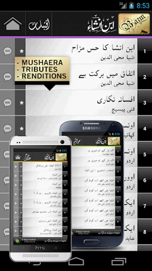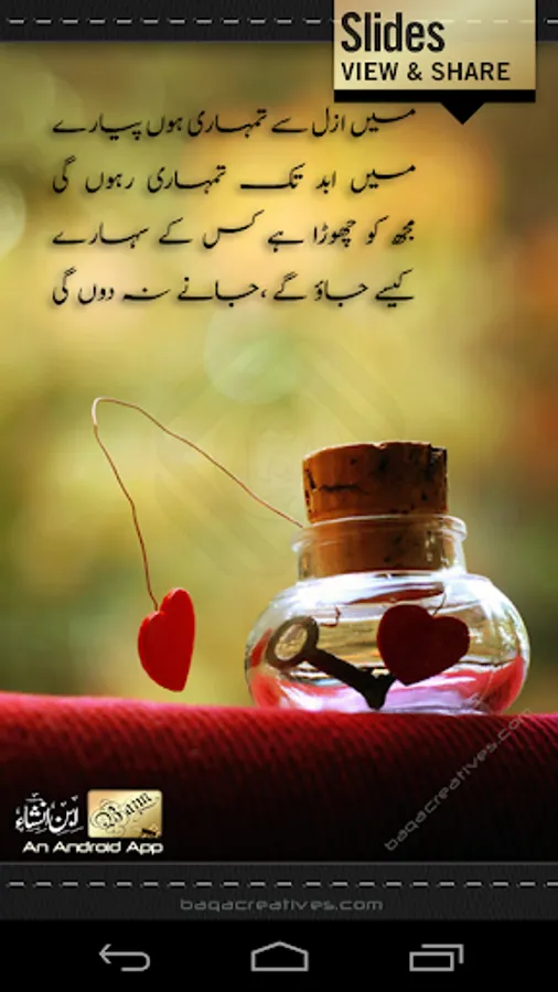 Bazm --- a production of Baqa Creatives, is a series of Urdu poetry apps. We are proud to be the leaders in Urdu apps on Android. The first app ever designed in Urdu script (Natsaleeq) is the creation of Baqa Creatives.