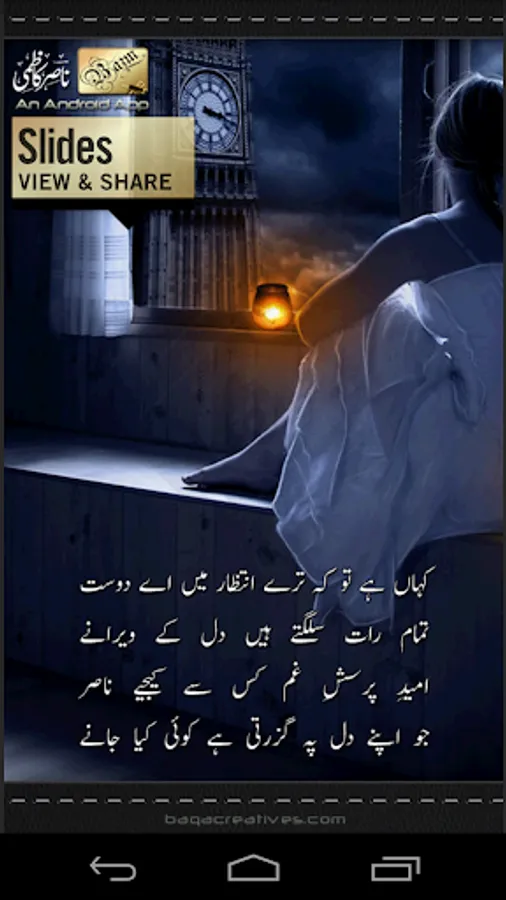 Bazm --- a production of Baqa Creatives, is a series of Urdu poetry apps. We are proud to be the leaders in Urdu apps on Android. The first app ever designed in Urdu script (Natsaleeq) is the creation of Baqa Creatives.
