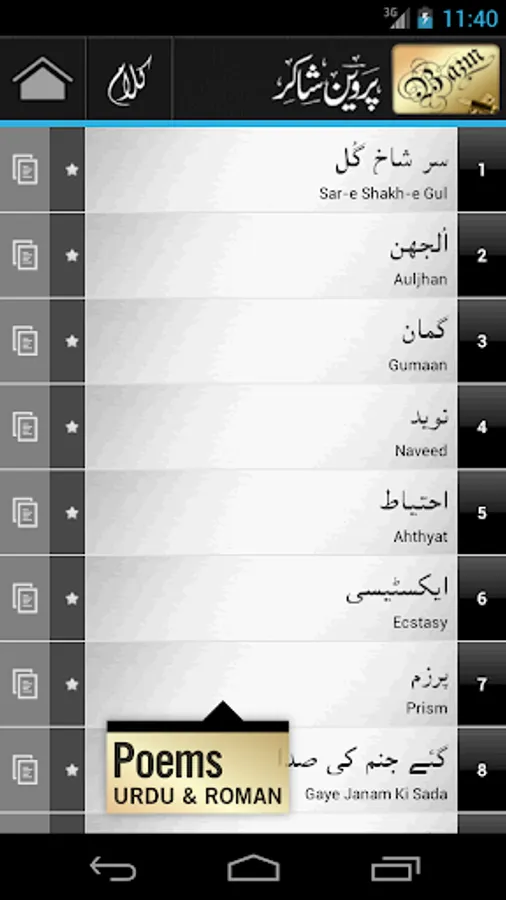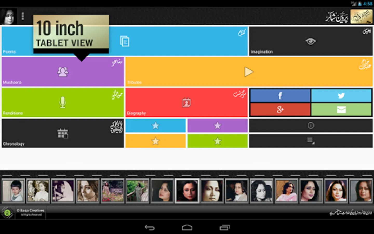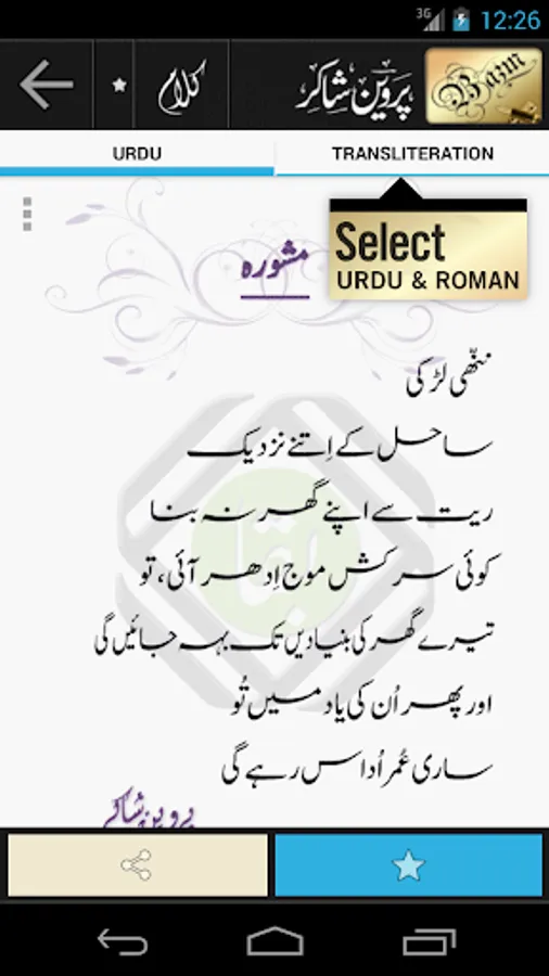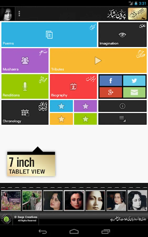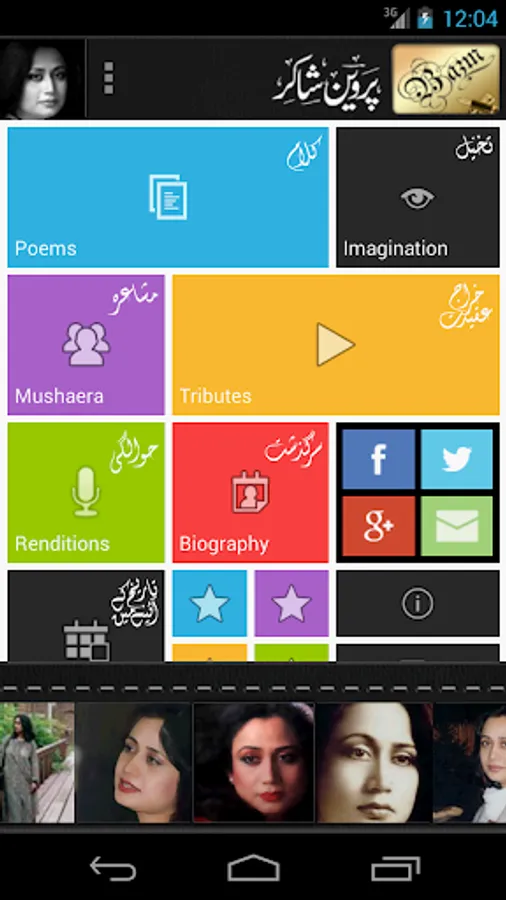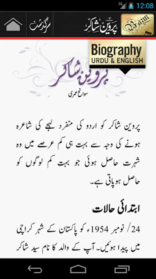 A comprehensive collection of poems, slides, videos, tributes, biography, chronology, intro and photos of one of the greatest Urdu poet Parveen Shakir. This app is our tribute and is dedicated to the memories of one of the greatest poets of twentieth century.