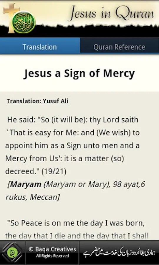 This app is an effort of a better understanding of Quran -- not to engage in any kind of polemic (since I consider polemic a sign of religious immaturity) but to foster better understanding. The primary purpose of this project is to create awareness and to provide a better understanding of the Qur’anic verses about Jesus (Isa), who is one of the greatest prophets, described in the Holy Quran.