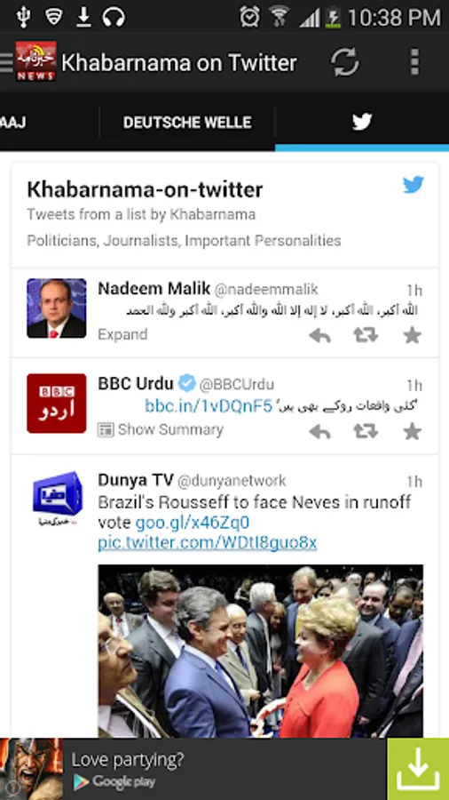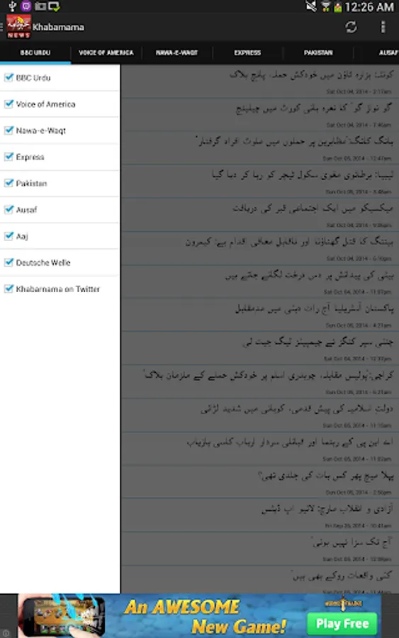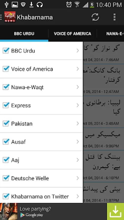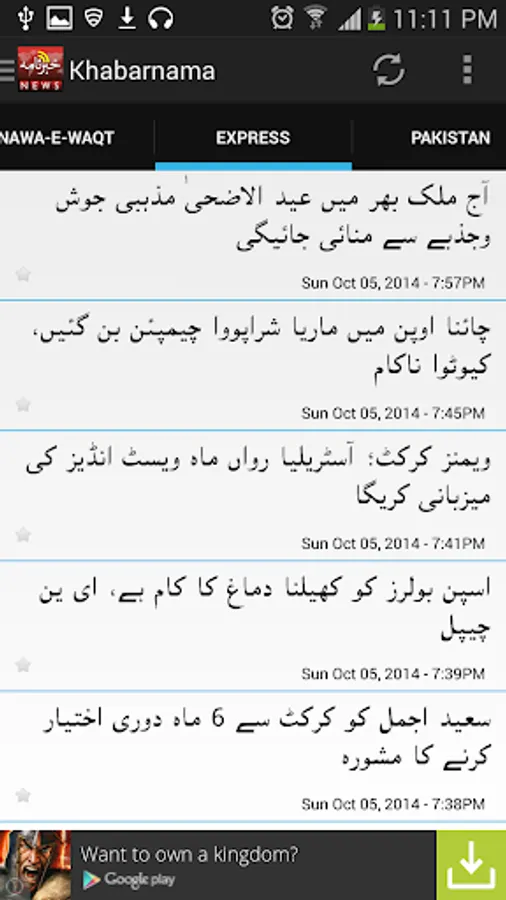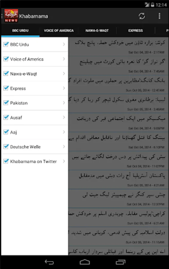 This free app lets you read the latest updates in Urdu from major Urdu news sources around the world. Our goal was to create a multi-source Urdu news reader with the best possible reading experience. So, on Khabarnama, users can quickly read the news feeds in a simple and intuitive user interface. Consuming content at places without an internet connection is also possible using the great offline Reading features.