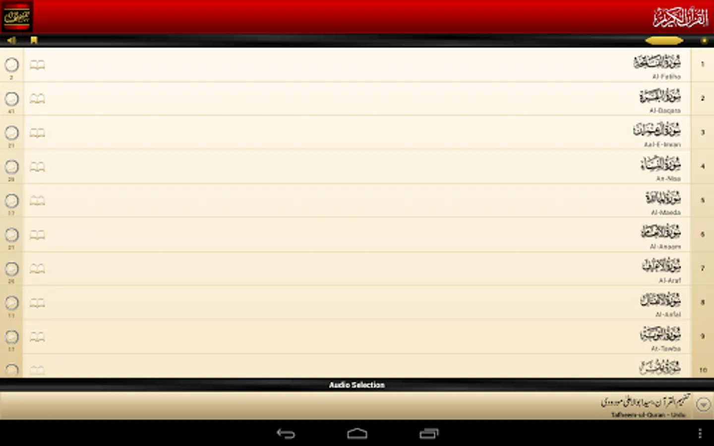 ★ Multi-Touch surah index with a spacious and smooth tracking that lets you jump directly to display surah and to play audio.