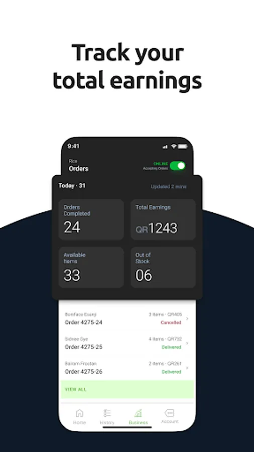 Baqaala multi service merchant management App allows owner and managers to handle the day to day online order management. Easy to accept, track the single order from users mobile devices. With easy Convenient of handling the day to day cash and card management by using this application. It give the enhanced operations of the business.