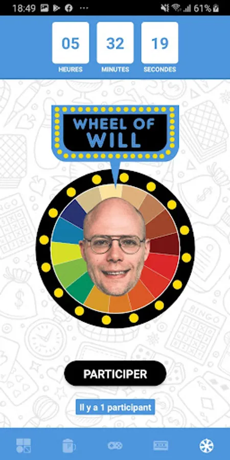 Wheel of Will: Every night, at 22:22, the Wheel of Will draws a winner. Look on the bar screen if you won!