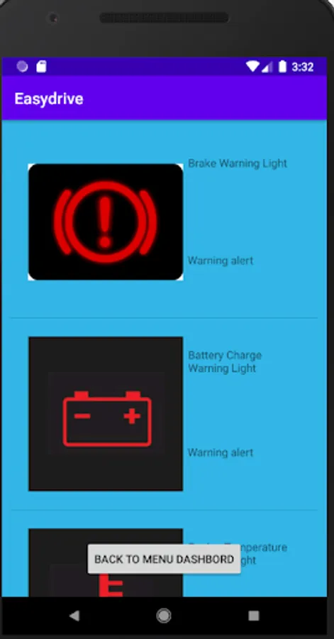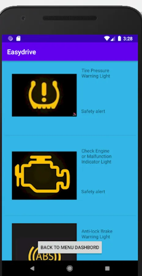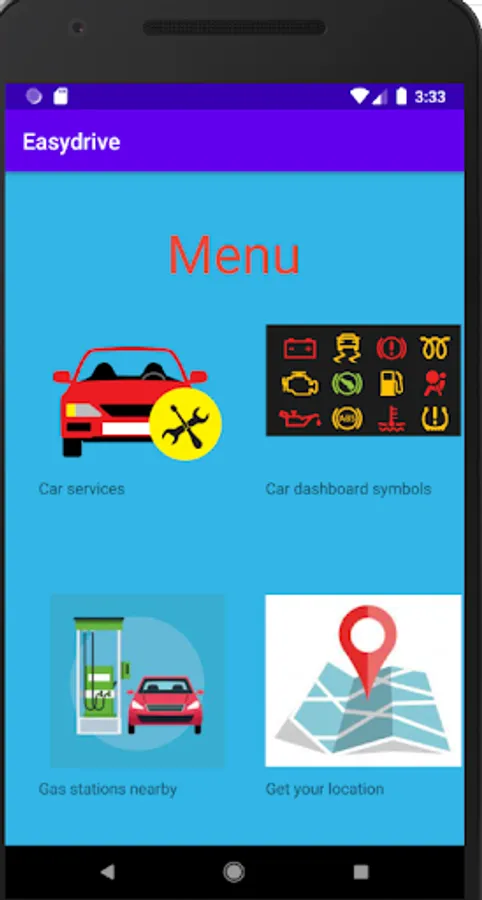 מטרת האפליקציה easy drive היא לאפשר פתרון מהיר וקל לכל בעל רישיון נהיגה הנתקל בבעיה במהלך הנסיעה. האפליקציה תספק פתרונות לתקלות ברכב, תציע שירותי דרך כמו חברת גרירה, אדם המתקן פנצ'רים, פורץ דלתות רכב וכל זה על ידי חיוג מידי בלחיצה אחת. בנוסף, באפליקציה יהיה ניתן לראות את תחנות הדלק באיזור בו אתה נמצא. כמו כן, באפליקציה יהיה מסך בו יינתן מידע נרחב על כל סוגי הנוריות שנדלקות בזמן נסיעה- נוריות הקשורות לאורות הרכב, לבטיחות הרכב במטרה כדי למנוע אסונות.