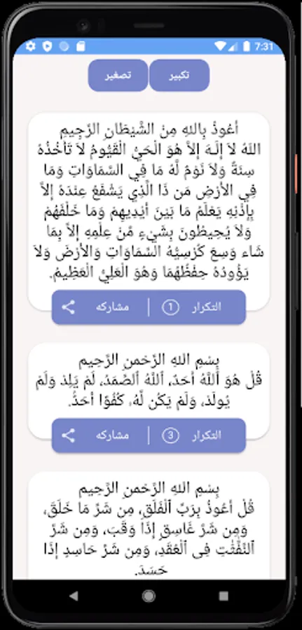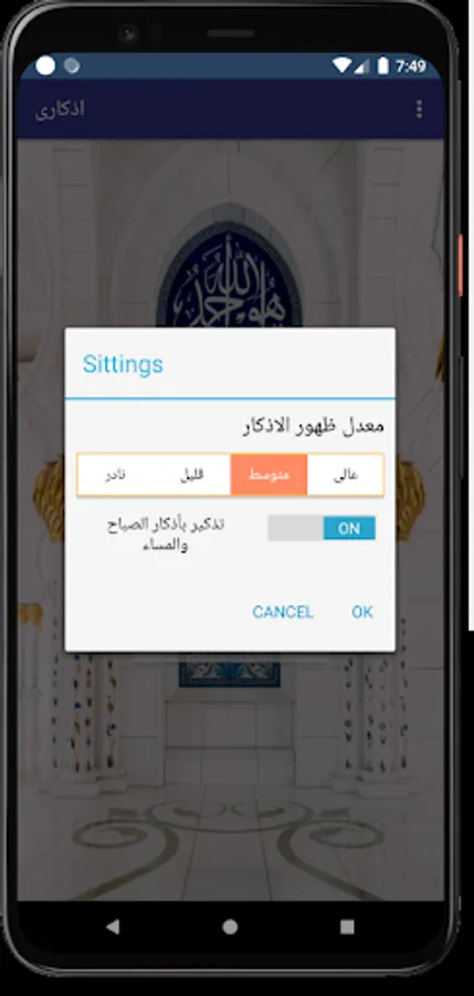 * The program shows some dhikr and supplications, morning and evening, and without the Internet in the form of notifications, and you can control the number of times they appear daily.