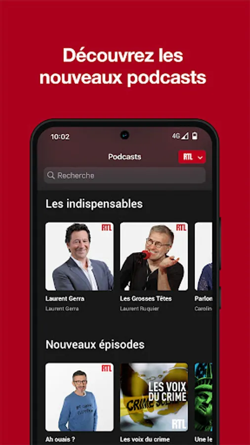 Find all the content of RTL, the leading private radio station in France, within a new application with completely redesigned ergonomics: