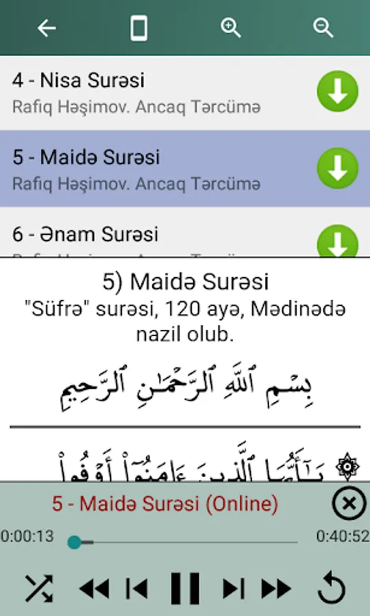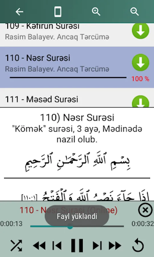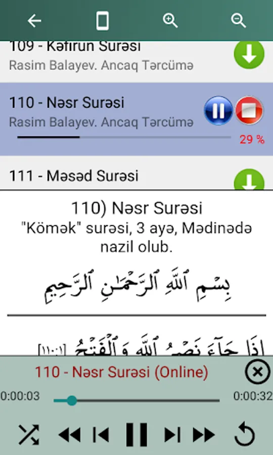 Voice Translation of the Holy Quran into Azerbaijani. Arabic is also available.
