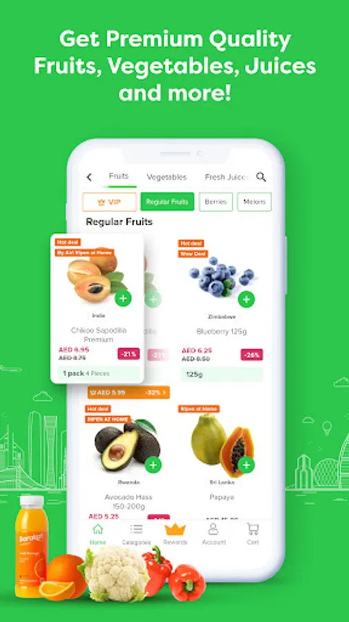 Barakat is your go-to online grocer for the freshest fruits, vegetables, fruit juices, salads, ice creams, juice-pops & more. A convenient, user friendly e-grocery store, Barakat brings you the largest variety of fresh produce from the best sources around the world. With same day or next day delivery via hygenic, food-grade refrigerated vehicles, we ensure freshness & quality remain intact till your doorstep