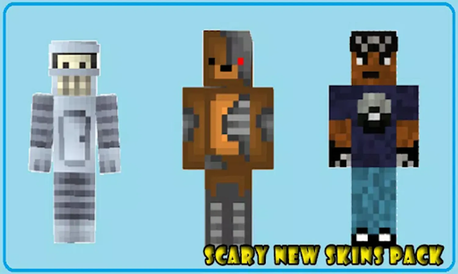 If you like to change the visual part of the game, then one of these parts is skins. Skins - this is the appearance of the main character, which can be changed at your discretion. With this skin you can change your appearance whether it is a boy, a girl or a horror man, a sportsman, teenager, parkourist, schoolboy or tough guy. It will also be a great addition if you are going to play with a friend or neighbor on the same map. It is very interesting to look at the reaction of your friends when a tough or scary guy runs up to them, and this turns out to be you. Or show your granny and mom what a horror or scary character you are in this game. In Scary (horror) New Skins pack you'll find some of the best horror skins.