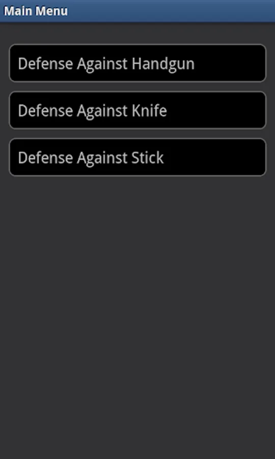 This application features various techniques of defense against weapon, including defense against knife and defense again handgun. Each technique is displayed in high quality, detailed video clips.