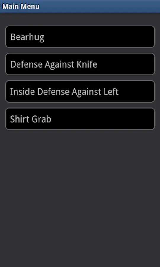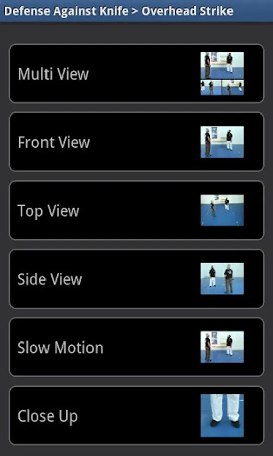 The Krav Maga – Free application features few techniques of each aspect of Krav Maga. It includes release against grabbing, choke and bearhug, defense against punches and leg kicks and defense against weapons.