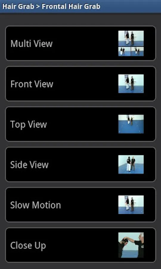 This application features various techniques of how to release from hand, shirt and hair grabbing. Each technique is displayed in high quality, detailed video clips.
