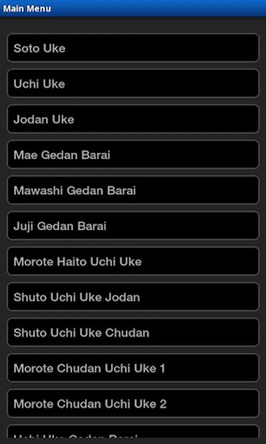 iBudokan’s «Kyokushinkai – Blocks» presents a large range of blocking techniques (Uke) such as Soto uke, Mae gedan barai or Shotei uke.