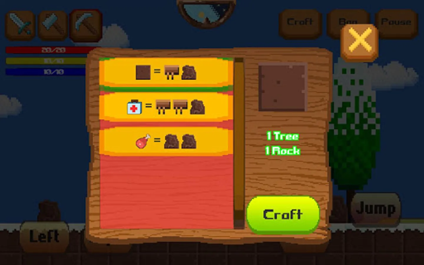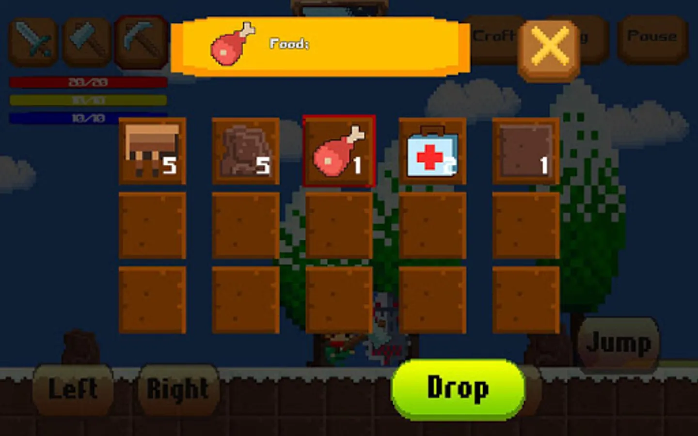 Welcome to the beautiful and dangerous world of Pixel Survival Adventure! Your initial goals are to find food and drink, collect resources and craft tools. But beware of monsters sneaking up on you!