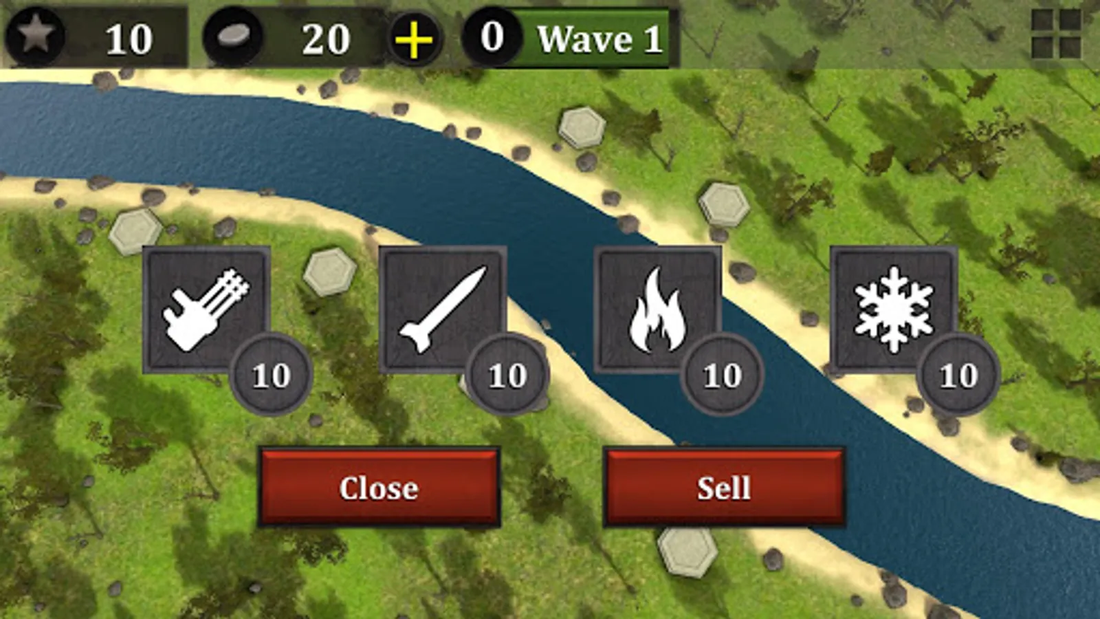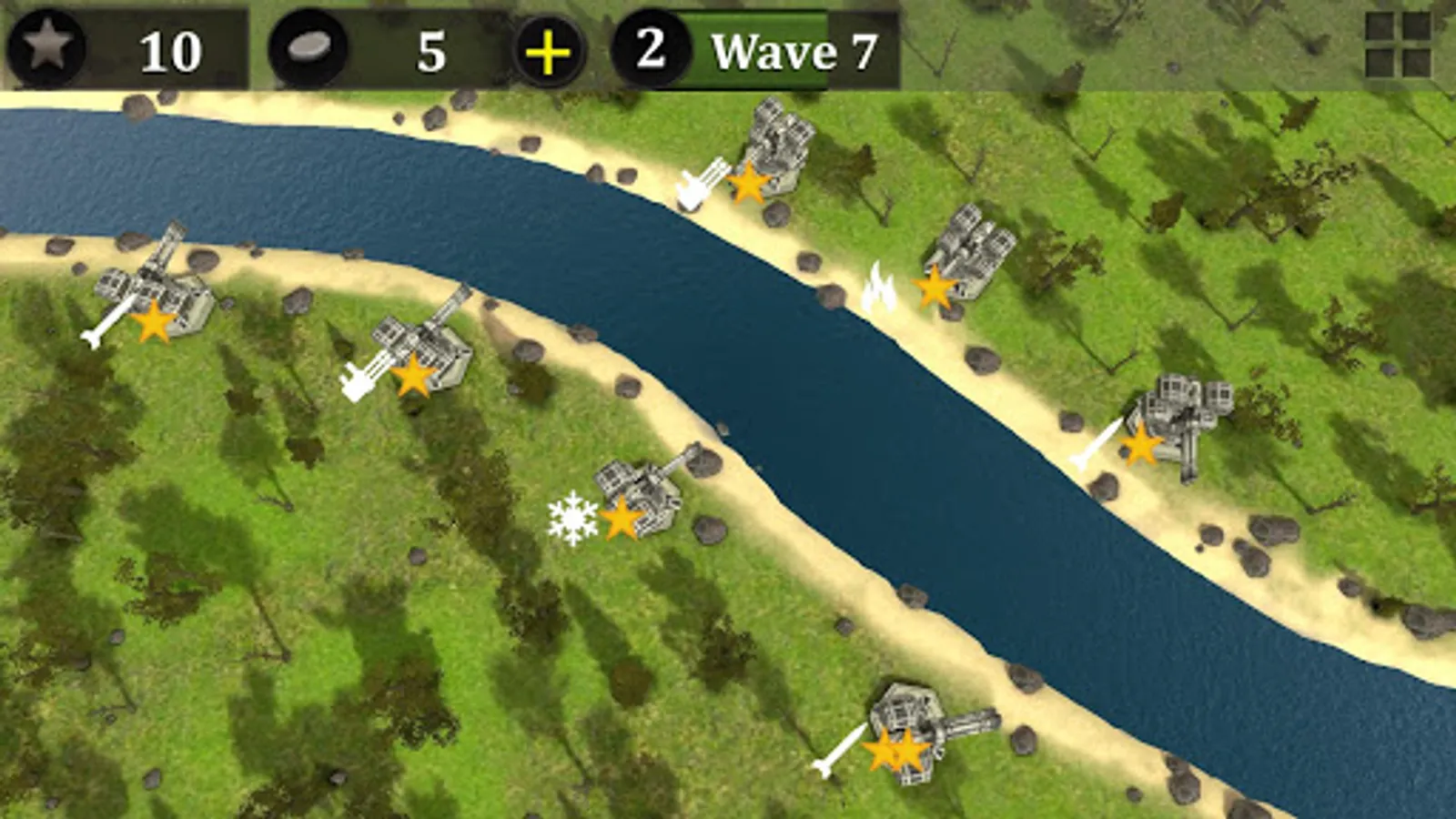 **HOW TO PLAY** Swipe the screen to move the camera around. To select a gun turret, tap the respective icon.