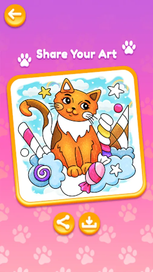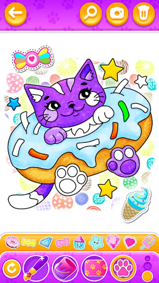 In kitty cats Glitter Coloring you can have lots of stickers, not to mention you can save and share the final art piece with friends. But the best part is that you also have guided coloring with a voice that will tell you what to do.