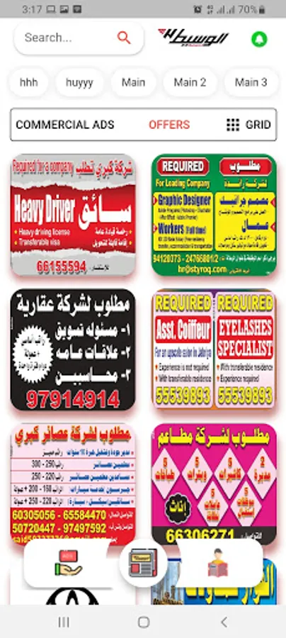 You can search for cars, real estate, electronics, home appliances, clothes, perfumes, jewelry, house-hold furniture, and much more.