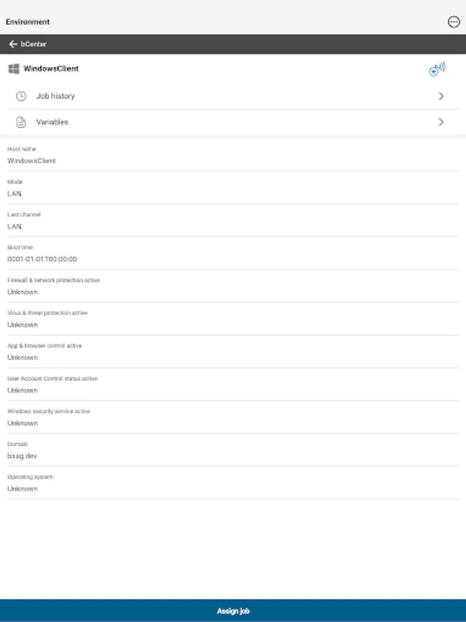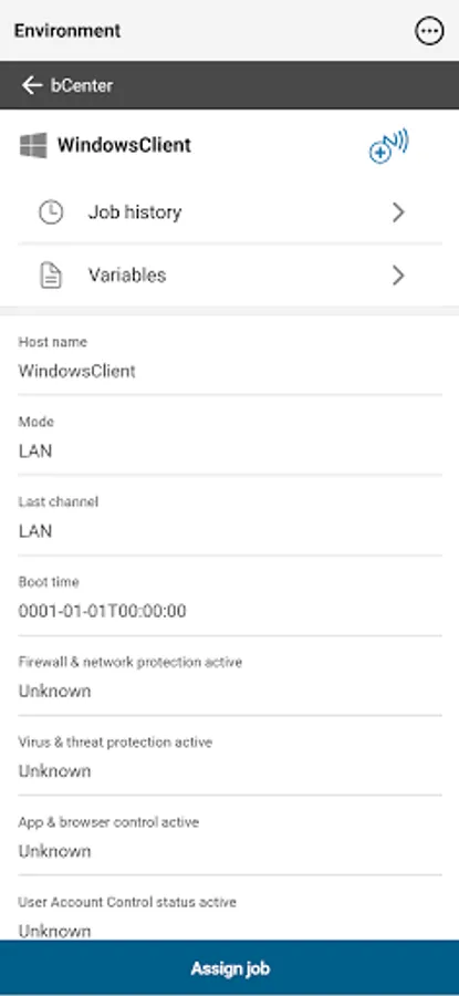 The baramundi Management Center App (bCenter) gives you the possibility to remotely administer your IT environment which you already manage via the baramundi Management Suite. You can quickly identify clients by barcode or QR code, review their hardware information and query the state of administrative jobs. Furthermore you can assign jobs to managed clients or restart jobs which are already scheduled.