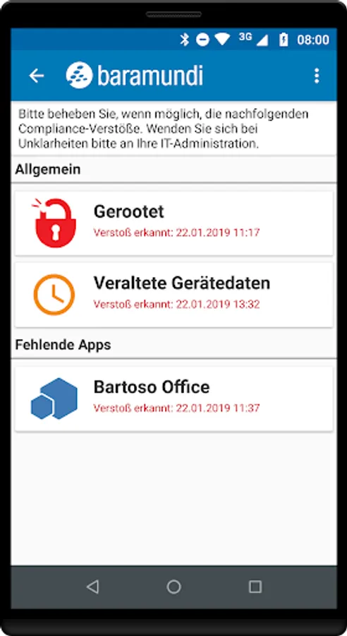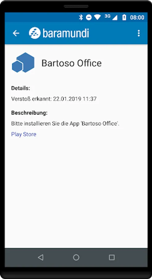 Please note that the baramundi EMM Agent requires the client management software baramundi Management Suite and a valid license for the baramundi Mobile Devices module. Your Android device must be managed by the baramundi Management Suite to use the features of the app. In order to do this, you need access data from your system administrator.