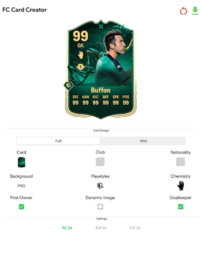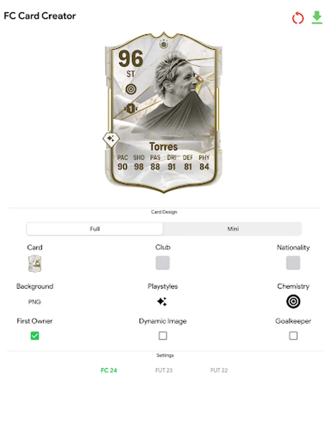 Create your own customizable FC 24, UT 23 and UT 22 Card designs.