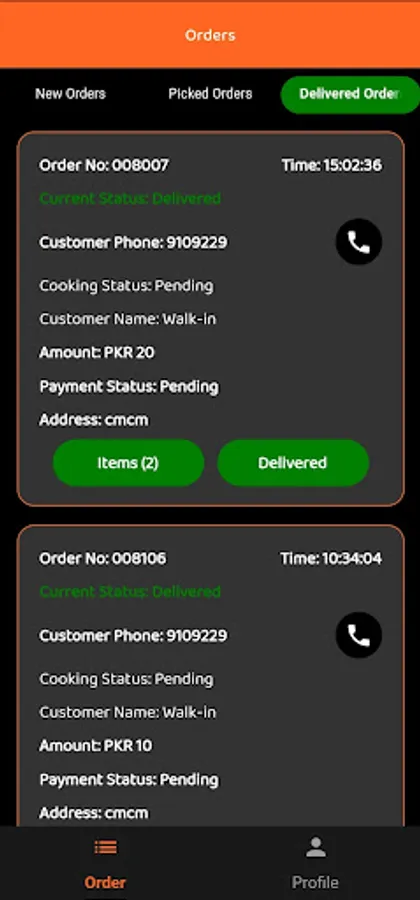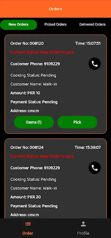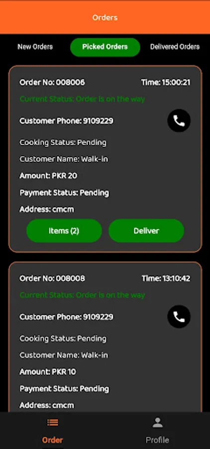 App for Baranh restaurant riders where they can receive orders and then deliver them.