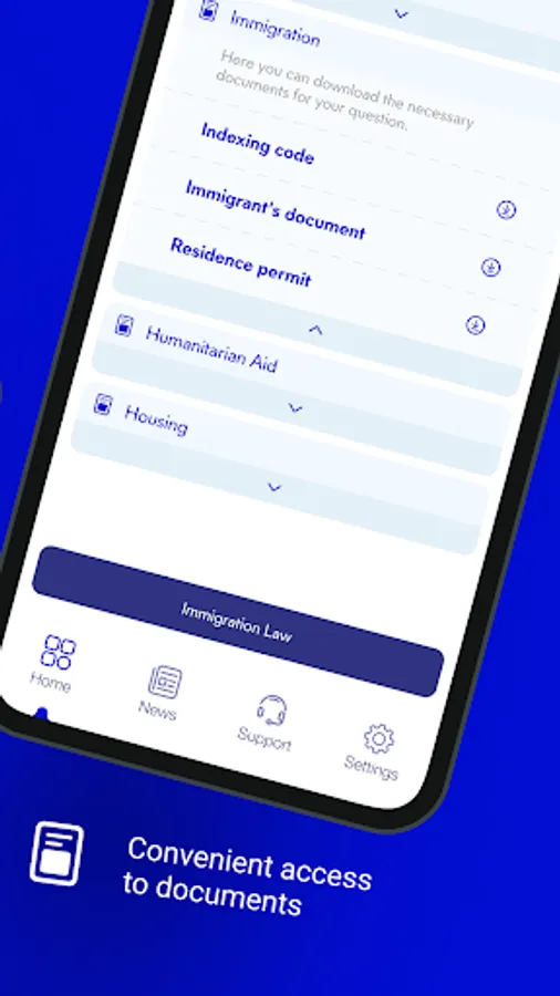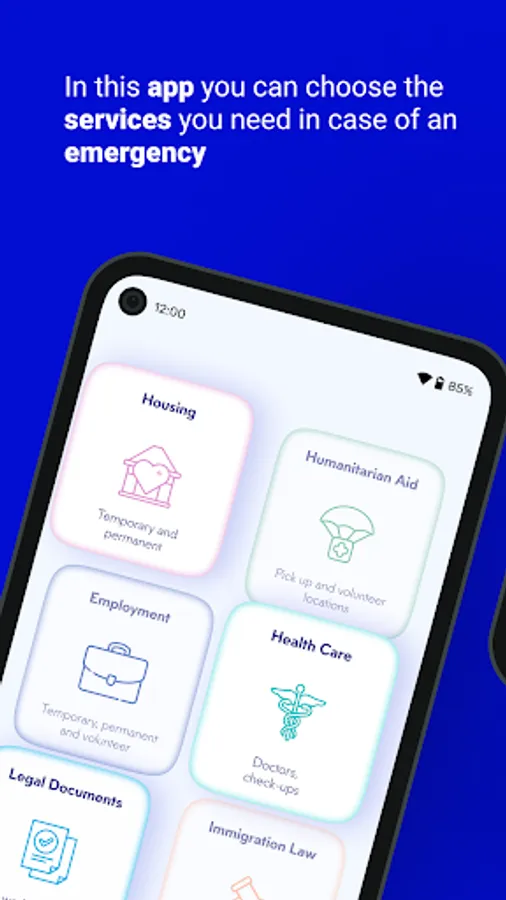 Mobile application to help refugees from different countries. The user will be able to select the country in which he needs help and use features such as finding housing, jobs, humanitarian aid, medicine, help with documents.