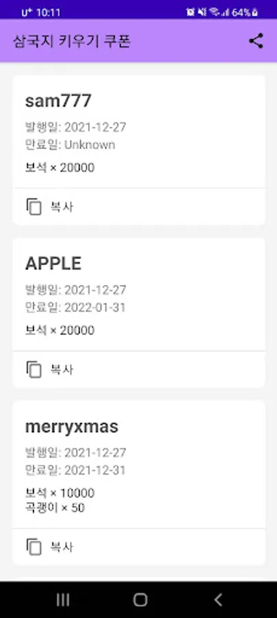 삼국지 키우기 쿠폰 Screenshots