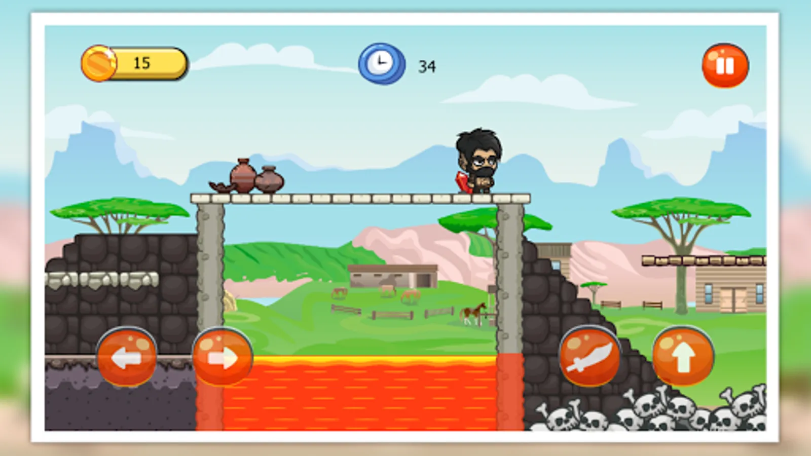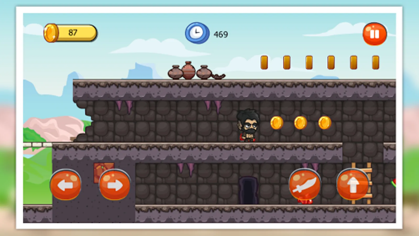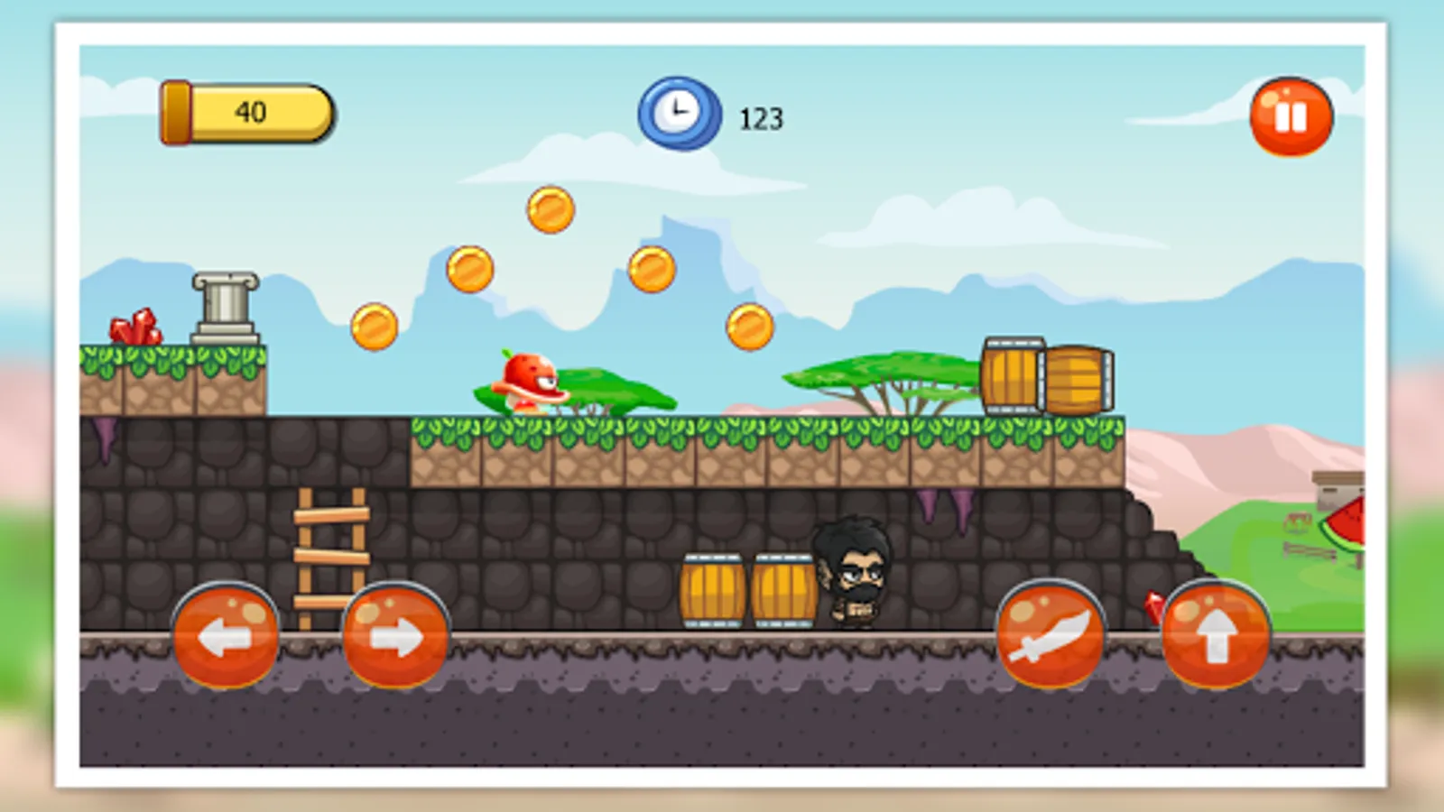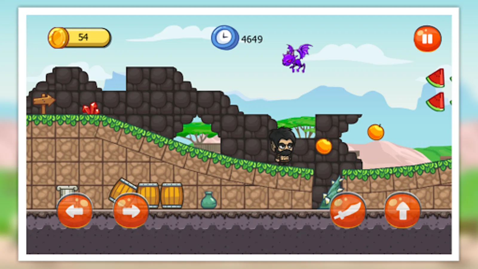 Barbarian Bob must save his Barbarian wife, collect coins and jump around.