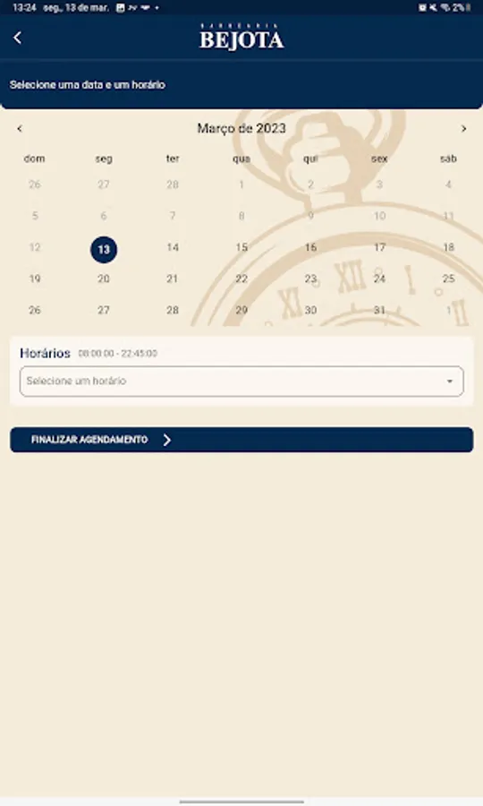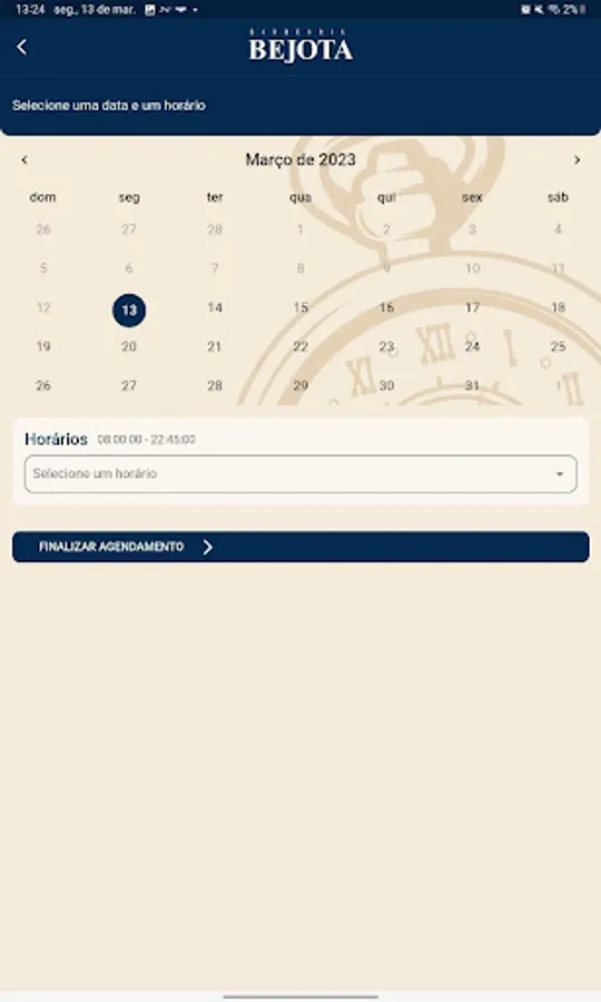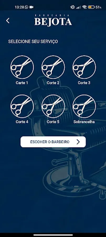 Welcome to the Barbershop Bejota service scheduling application! Here you can schedule your next visit to our barbershop with just a few taps on your cell phone screen.