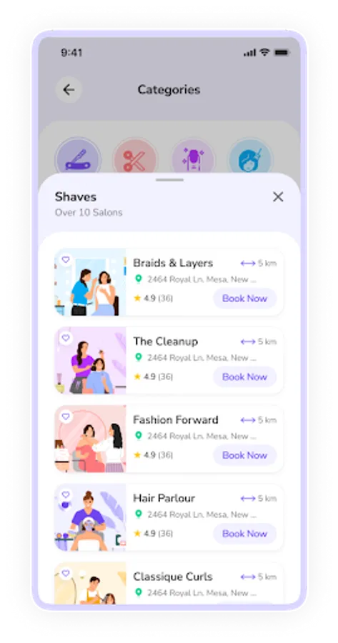 Browse Barbers: Explore a comprehensive list of barbers in your vicinity. Each barber has a detailed profile showcasing their expertise, experience, and customer reviews. Get to know your options and find the perfect match for your grooming needs.