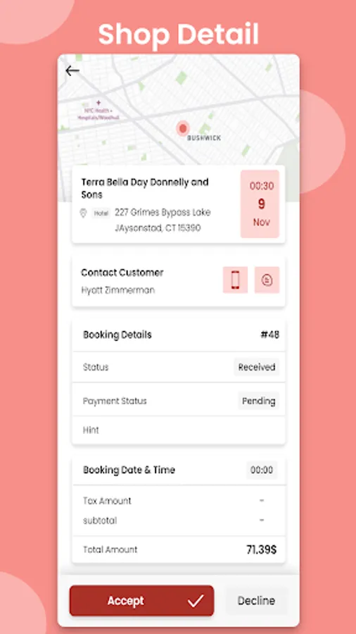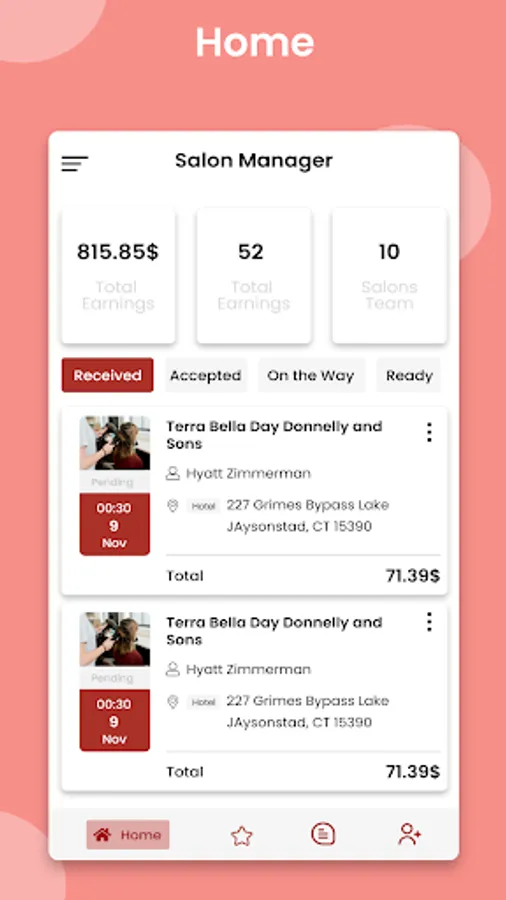 The barber owner can check the status of a booking by switching the booking tab once a customer has made a service reservation. The booking can also be accepted or rejected by him.